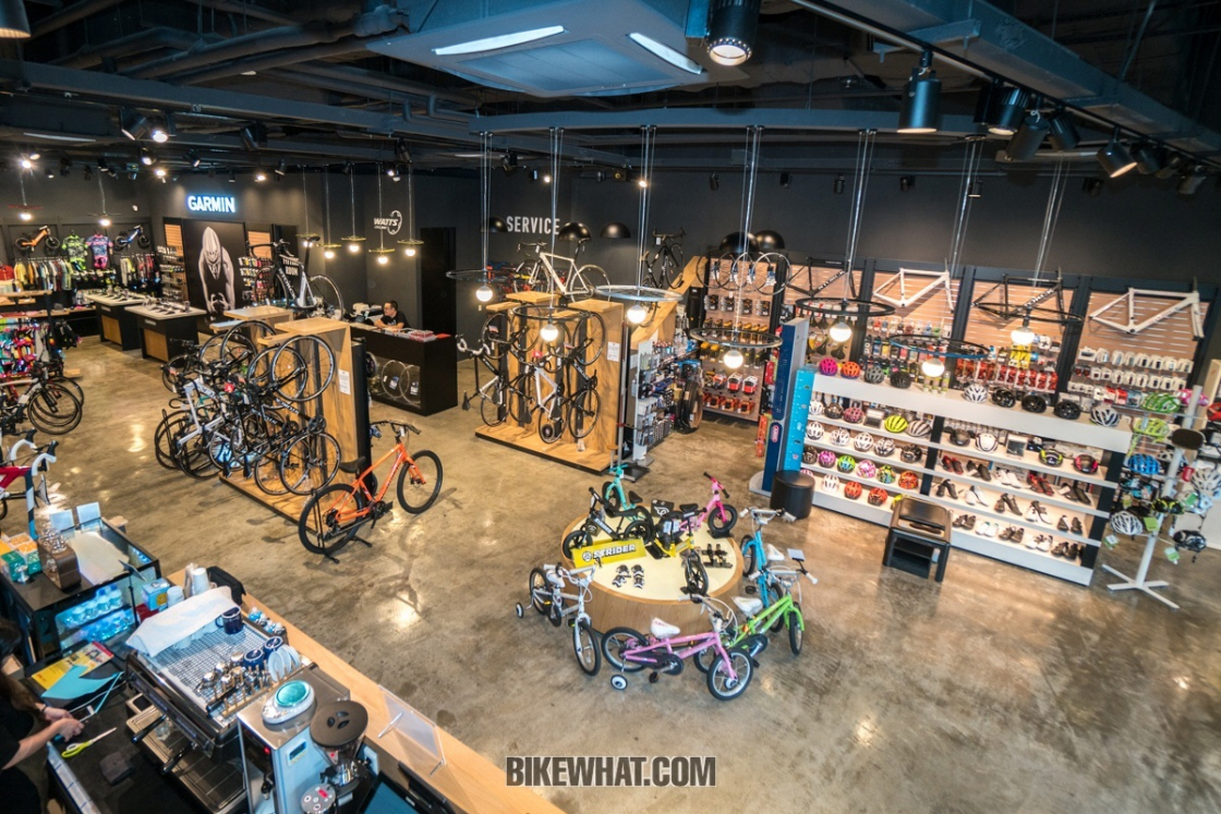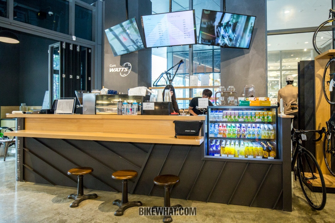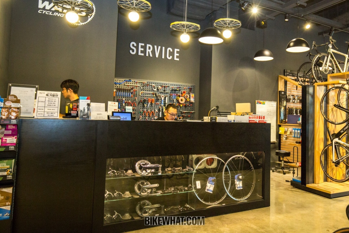 와츠사이클링 고양점은 80평 규모로 하남점보다 더 넓은 공간을 자랑한다. 매장은 전시 공간과 의류 피팅룸, 자전거 정비 센터, 와츠 카페로 구성되며, 매장 앞에는 라이더들을 위한 자전거 거치대도 마련된다.