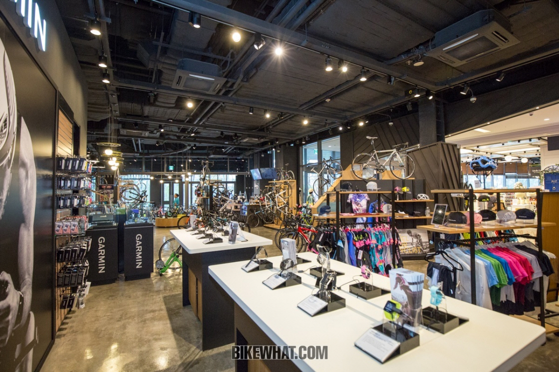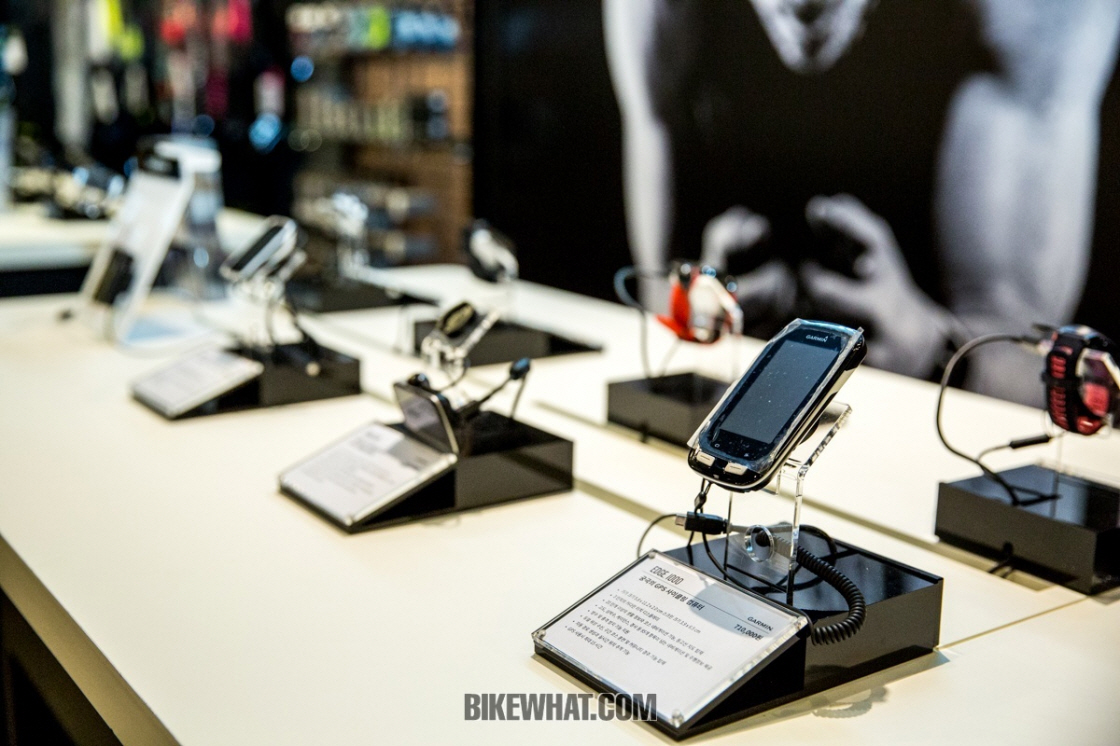 <전시공간은 자전거 의류, 용부품 코너와 가민존으로 구성됐다.>