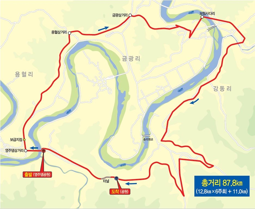아름다운 고도에서 펼쳐지는 레이스. 영주댐공원에서 출발해 용혈리, 금광리, 강동리를 거쳐 다시 출발지로 돌아오는 12.8km의 구간. 선수들은 이를 총 6회 내달리며, 11km가 더해져 총 87.8km의 거리를 달렸습니다. 총 30개 팀 295명의 사이클리스트들은, 때이른 더위가 찾아온 영주의 도로 위에서 힘찬 에너지를 발산했습니다. 크고 작은 언덕이 반복되는 '낙타등' 경주로는 많은 선수들에게 큰 힘과 질긴 인내심을 요구하였습니다. 하지만 이번 스테이지에서의 보상은 그 어느 때보다도 값집니다. 이날 결과에 따라서 TDK 참가가 기정사실화될 수 있기 때문이죠. 그리고, 그것이 일찍 결정된다면, 남은 두 개의 스테이지에는 팀 전술을 시험하거나, 또 다른 전략을 세워 연습할 수 있는 좋은 기회가 생기기 때문이죠.
