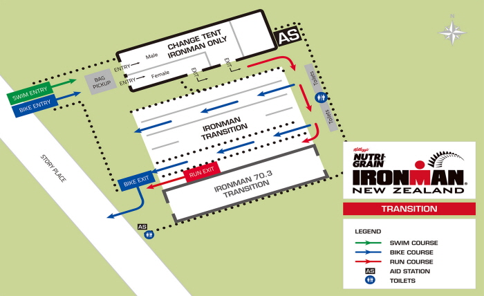 시합 전 여권으로 본인 확인을 거친 후 물품을 나눠주며 그 물품에는 배번이 있어서 본인의 사이클, 헬멧 등에 부착을 해야 한다. 오른쪽 팔, 종아리 등에도 본인의 배번을 일회용 타투식으로 부착이 가능하게 지급이 된다. 손목에는 본인의 배번이 적혀있는 밴드를 착용하게 되며 이 배번이 있어야만 사이클 검차, 웻-수트 검사 등이 가능하다. 손목밴드는 대회 시상식 때까지 꼭 착용하고 있어야 한다. 대회에 등록하려면 웻-수트를 특수물질에 한번 씻어야 선수 등록을 할 수 있는 티켓을 받을 수 있다. 이 과정을 거치지 않고서는 절대 대회 등록을 할 수가 없다. 뉴질랜드 대회에서만 볼 수 있는 진행 과정이니 참고할 것.