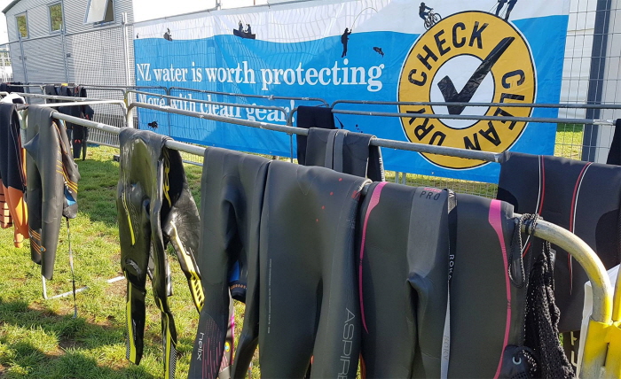 <웻수트를 준비해야 한다. 뉴질랜드는 호수 오염을 방지하기 위해 대회 전 웻수트를 세척하는 작업을 진행한다.>
