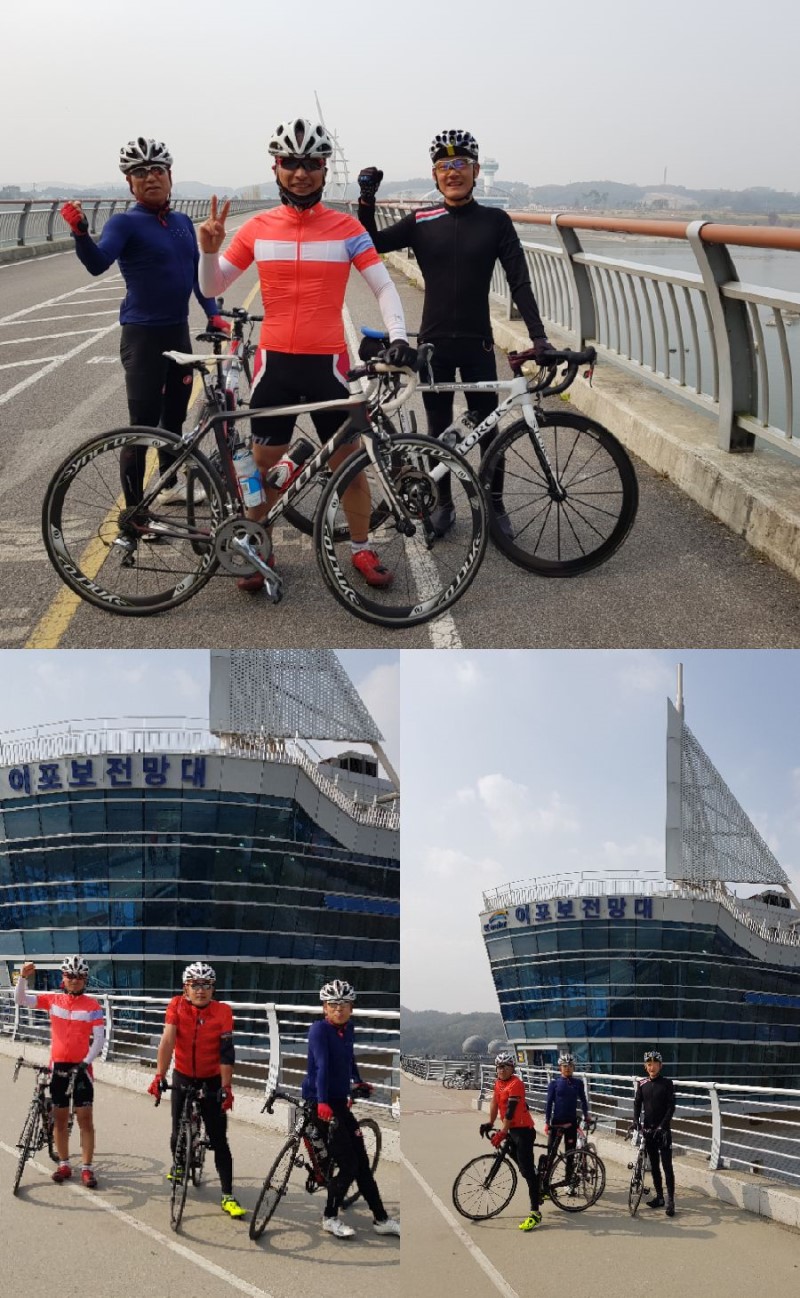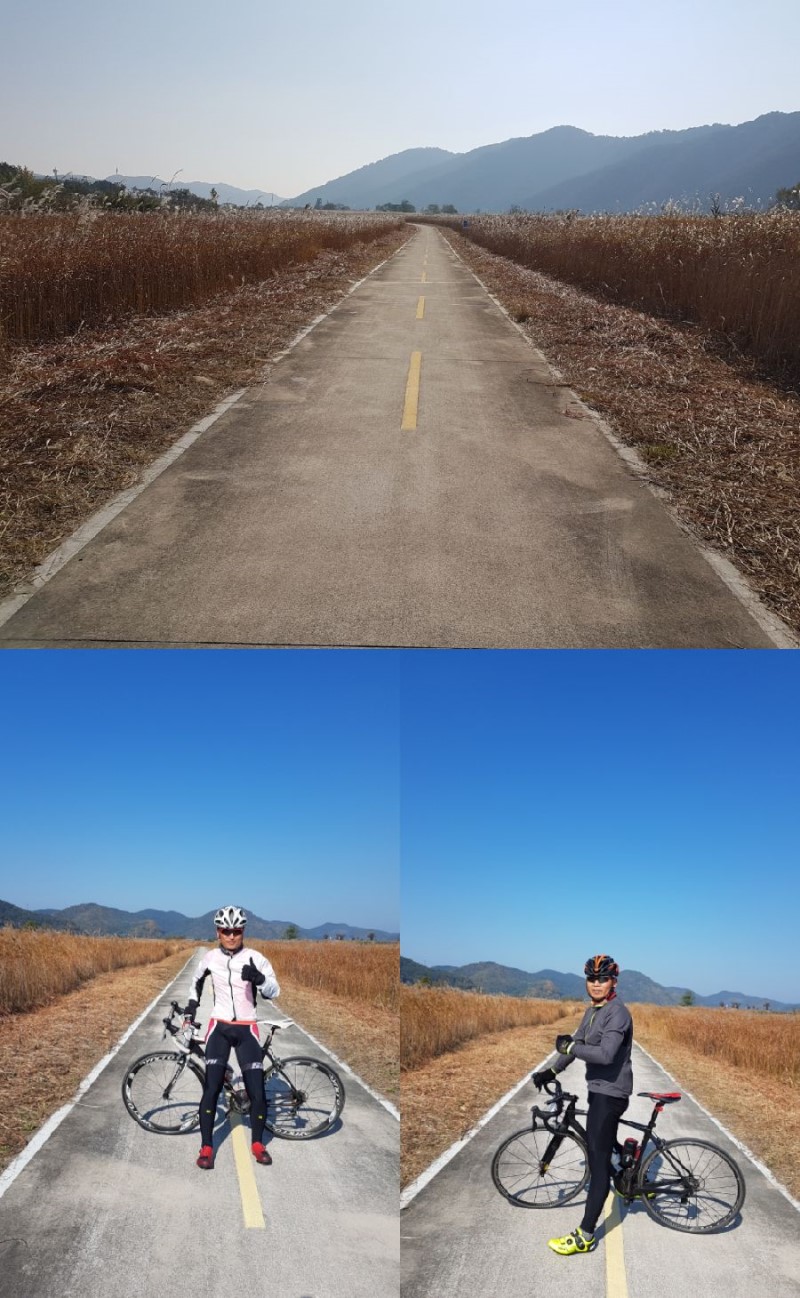 아직도 동참하고 있다. 하지만 주변을 볼 수 있는 여유는 없다. 거칠어진 숨을 몰아쉬고 오로지 앞에 가는 팀 원의 뒷모습과 바퀴만 보면서 쫓아가다 잠시 숨을 돌릴 때 주변을 보니 다른 동호회 팀도 보인다. 그들과 함께 또 다른 기운을 받고 여정을 함께한다. 다들 많은 연습을 했는지 지친 기색이 안 보인다. 체력과 기본기가 잘 되어있는지 계속해서 빠른 속도로 질주한다. 엄청난 맞바람을 맞으면서도 멈추지 않고 계속 앞으로 나아간다. 가야 할 목적지가 있기에........