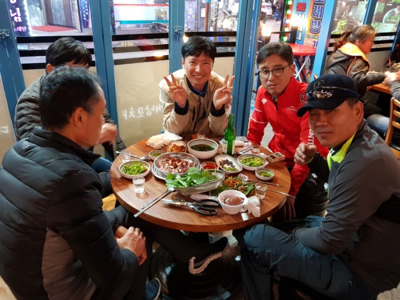 부산 을숙도에 무사히 도착 후 먼저 도착하신 1팀 분이 잡아준 숙소에 짐을 풀고 결의를 다지기 위한 단합 회식을 한다.