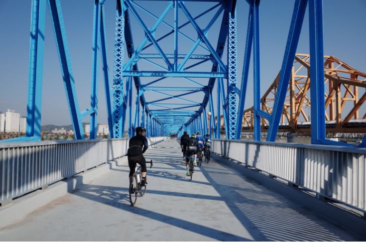 라이딩 중 많은 참가자분들과 마주치고 함께 가며 조금이나마 지루하고 힘든 이번 라이딩에 서로에게 많은 힘이 되어준다. 처음 보는 분들이지만 같은 마음 서로서로 끌어주며 첫날의 목적지인 상주 낙단보로 간다.
