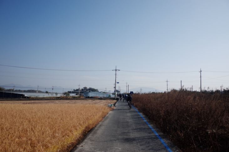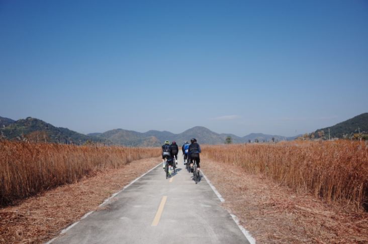 생각보다 자전거 길은 너무 아름다웠다. 새벽이라 조용하고 아늑한 기분 마저 들었다. 사실 출발 전엔 자전거길이 목적지를 향하는 이동 경로 일뿐이라 생각했었다. 하지만 갈대와 동트는 새벽의 이미지는 고요하고 아름다웠다.