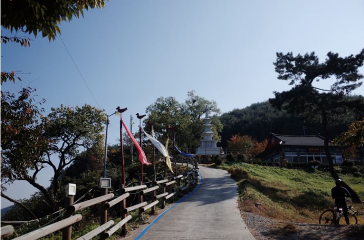 조용한 절이 있는 자전거길로 들어섭니다. 시간이 멈춰 있는 것 같은 조용한고 모든 것이 평화로워 보이는 곳이었습니다.