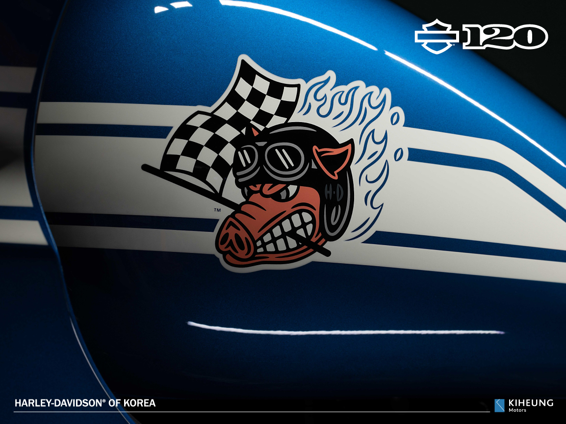 라이더 커뮤니티에서 영감 받아 매년 한정 수량 제작되는 모터사이클, 인수지애스트 컬렉션은 특별한 커스텀 페인트와 그래픽을 자랑한다. 특히 올해 새롭게 선보이는 패스트 조니 컬렉션(Fast Johnnie Collection)은 1960-70년대 머슬카를 상징하는 스트라이프 문양과 할리데이슨의 첫 번째 레이싱 마스코트인 ‘아기돼지 조니’(Johnnie the Pig)의 얼굴이 어우러진 특별한 그래픽을 연료탱크 측면에 연출했다.